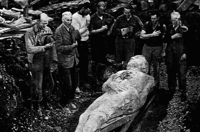 Raksasa Cardiff adalah manusia batu setinggi sepuluh kaki yang digali dari tanah di sebuah pertanian di Cardiff, New York. Beberapa orang berteori bahwa itu adalah patung kuno, sementara yang lain percaya itu adalah raksasa yang membatu dari zaman Alkitab. Pada akhirnya, ternyata itu adalah tipuan yang dipahat dan ditanam di tanah oleh seorang penjual tembakau bernama George Hull. Raksasa CardiffMenyimpan Foto: Ebaumsworld