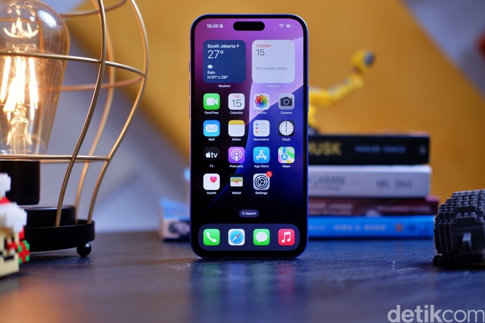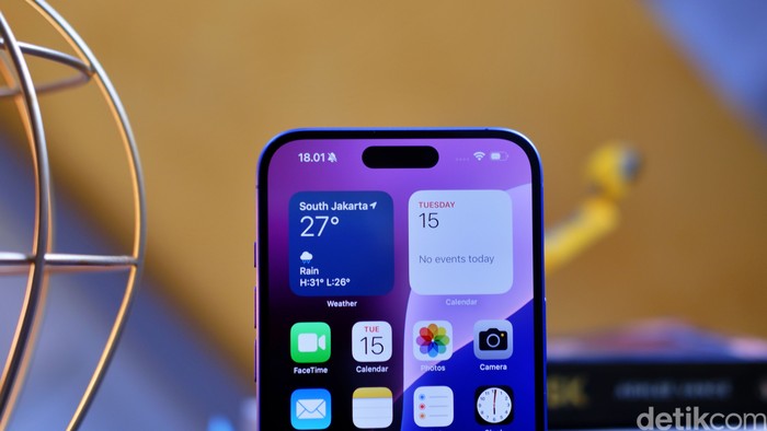 Bagian atas terdapat Dynamic Island yang mampu memberikan akses cepat ke informasi penting tanpa mengganggu aktivitas pengguna. Foto: Adi Fida Rahman/detikINET