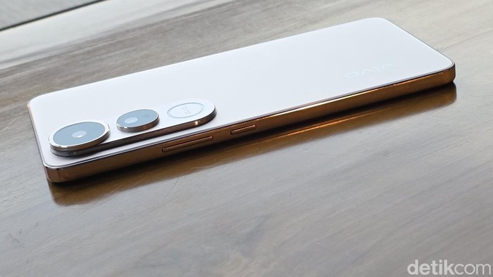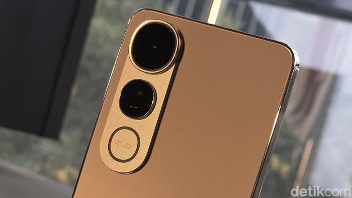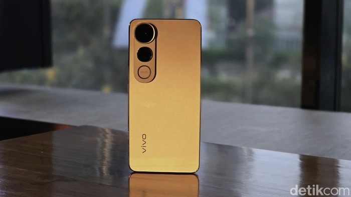 Ini adalah Vivo V50 Lite 5G All Gold. Terinspirasi dari ungkapan 'All Good,' warna ini tampil dengan kilau keemasan yang elegan sekaligus beraniβcocok bagi mereka yang ingin tampil menonjol dan menjadikan setiap momen terasa lebih spesial. Foto: Adi Fida Rahman/detikINET