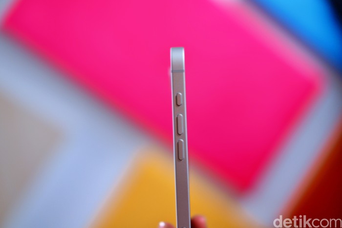 iPhone 16e menghadirkan Tombol Aksi yang menggantikan sakelar Ring/Silent. Tombol ini, terletak di sisi kiri, dapat diprogram untuk berbagai fungsi, menjadikan penggunaan ponsel lebih intuitif. Foto: Adi Fida Rahman/detikINET