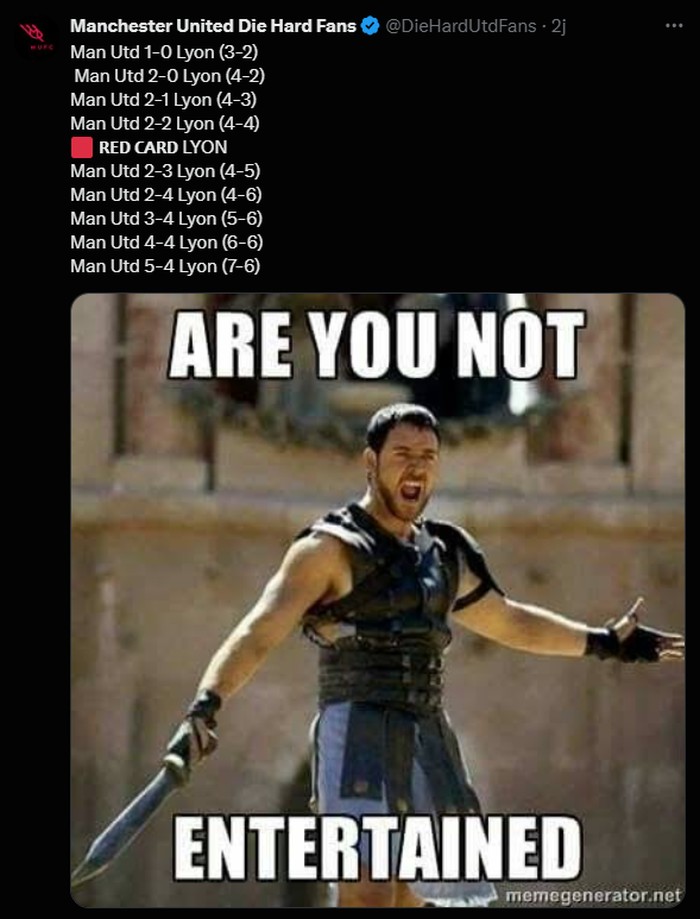 Fans MU merasa terhibur atau malah senam jantung sepanjang pertanding? Foto: (X.com).