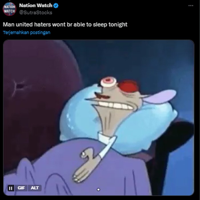 Gambaran haters Manchester United yang sulit tidur. Padahal sudah siapin bahan untuk meledek fansΒ Manchester United di media sosial. Foto: (X.com).