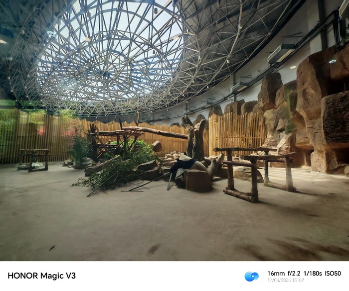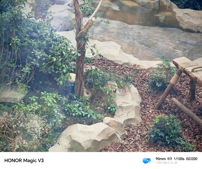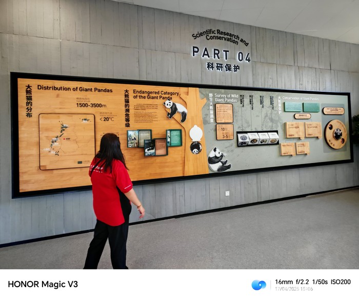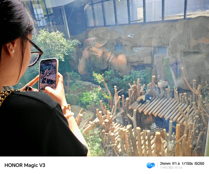 Panda merupakan hewan endemik Tiongkok berasal dari keluarga beruang. Aksi menggemaskan saat makan bambu caba diabadikan pakai Honor Magic V3.