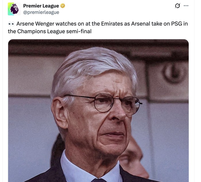 Pelatih legendaris Arsenal Arsene Wenger ikut menyaksikan pertandingan semalam. Foto: X.com