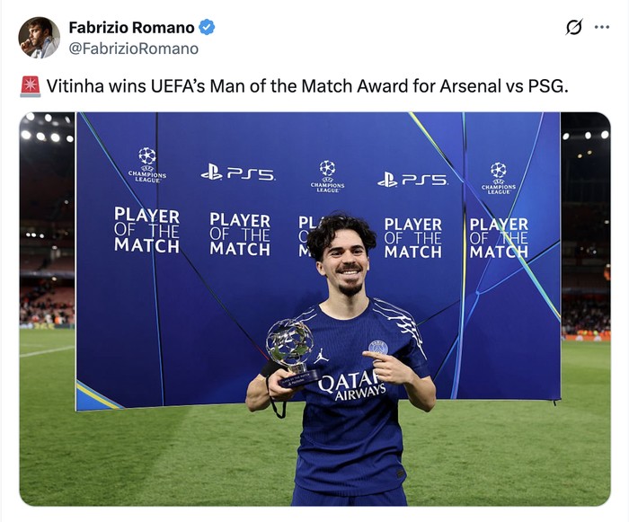 Vitinha jadi man of the match laga semalam. Foto: X.com