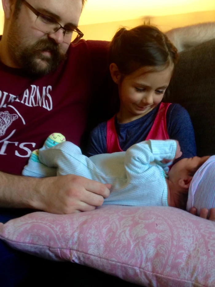 Seorang gadis cilik saat pertama kali menggendong adiknya baru lahir. Foto: via BrightSide