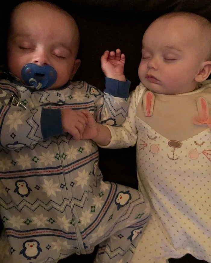 Bayi kembar ini tidur dengan saling menggenggam tangan. Foto: via BrightSide