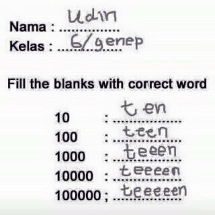 FotoINET Jawaban Kocak Soal Bahasa Inggris, Nyeleneh dan Out of the Box Pool - detikInet Kamis, 08 Mei 2025 21:00 WIB Tautan telah disalin Jakarta - Ketika kesulitan dalam mengerjakan soal Bahasa Inggris, mereka menolak untuk menyerah! Jawab saja dengan kreativitas. No worries, kan bisa Bahasa Indonesia. Foto: via X Rada gelap. Foto: via Bored Panda Nggak, aku nggak cari uang. Aku mah nebeng doang. Foto: via Bored Panda Tidak bisa dibantah. Foto: via Bored Panda Latihan piano sehari 20 menit, malah dibilang 'nerd'. Foto: via Bored Panda Bro sadar hidupnya kemungkinan nggak lebih dari 100 tahun. Foto: via Bored Panda Nggak salah, tapi bukan jawaban yang disukai guru. Foto: via Bored Panda Kalau aku jadi kepala sekolah... aku berhenti sih, soalnya nggak mau jadi kepala sekolah. Foto: via Bored Panda Eeeeeeh! Foto: via X Nice, Udin. Foto: X/Twitter (/) TAGS bahasa inggris soal bahasa inggris fotoinet fotodetikcom LIHAT LAINNYA Tautan telah disalin
