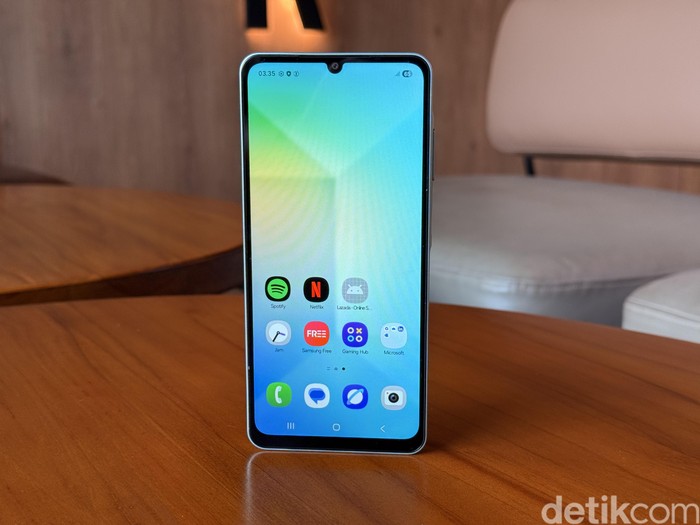 Samsung Galaxy A06 5G ditenagai oleh MediaTek Dimensity 6300 (6 nm), prosesor octa-core yang mendukung jaringan 5G. Chipset ini dipadukan dengan GPU Mali-G57 MC2, menjanjikan performa yang cukup tangguh untuk kebutuhan sehari-hari seperti browsing, streaming, hingga gaming Free Fire. Foto: Adi Fida Rahman/detikINET