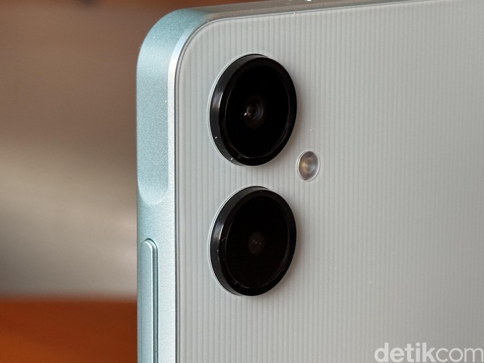 Untuk fotografi, Galaxy A06 5G dibekali dua kamera belakang: kamera utama 50 MP (f/1.8) dan kamera depth 2 MP (f/2.4), lengkap dengan LED flash. Kamera ini mendukung perekaman video Full HD pada 30fps, cukup mumpuni untuk mengabadikan momen sehari-hari. Fitur lain seperti mode portrait dengan efek bokeh juga turut disematkan Foto: Adi Fida Rahman/detikINET