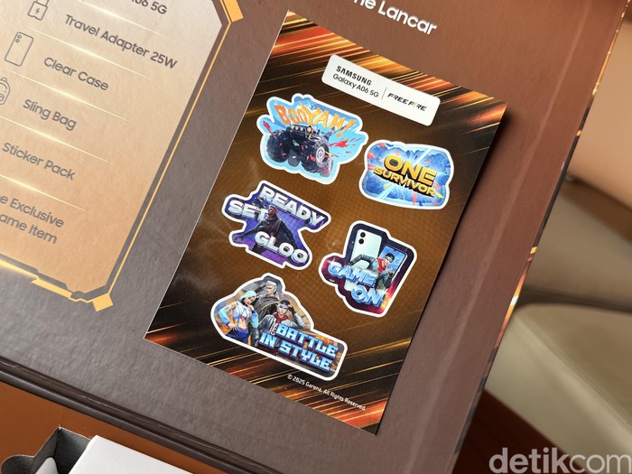 Galaxy A06 5G Free Fire Package pada harga Rp 2.399.000 di toko offline dan online Samsung. Dengan harga tersebut, kamu sudah bisa mendapatkan berbagai item eksklusif Free Fire Package senilai hingga Rp 1.014.000. Foto: Adi Fida Rahman/detikINET