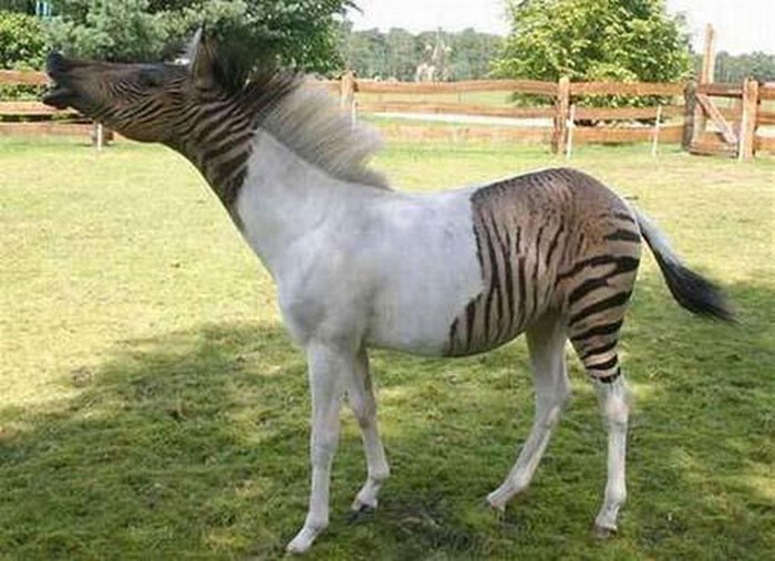 Zebroid adalah persilangan antara kuda, keledai, atau kuda lainnya. Zebroid telah dibiakkan sejak abad ke-19, dengan Charles Darwin mencatat beberapa hewan hibrida ini dalam karyanya. Umumnya tidak menjadi masalah spesies zebra mana yang digunakan. Zebroid tidak ditemukan di alam liar dan sering kali mandul. Zebroid secara fisik menyerupai induknya yang bukan zebra tetapi memiliki garis-garis seperti zebra. Foto: unbelievable-facts
