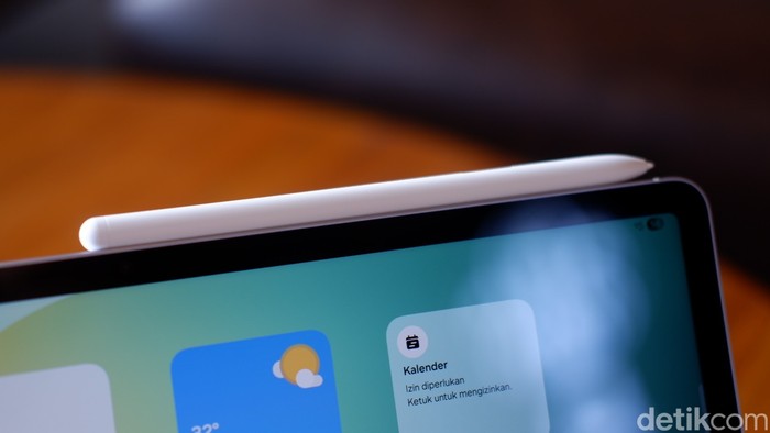 Selain di bagian belakang, kita bisa menempekan S Pen di bagian atas tablet (mode landscape). Foto: Adi Fida Rahman/detikINET