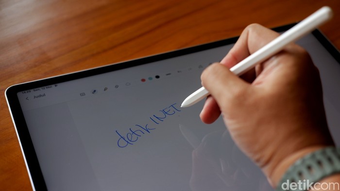 Kita dapat menulis bak di atas kertas. Tablet ini dapat mengonvesi tulisan tangan menjadi teks. Foto: Adi Fida Rahman/detikINET