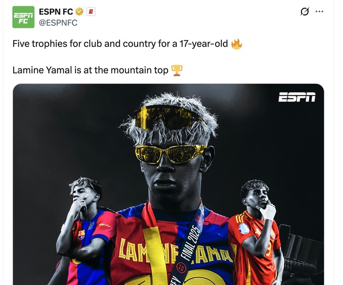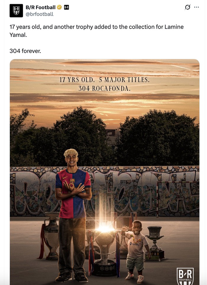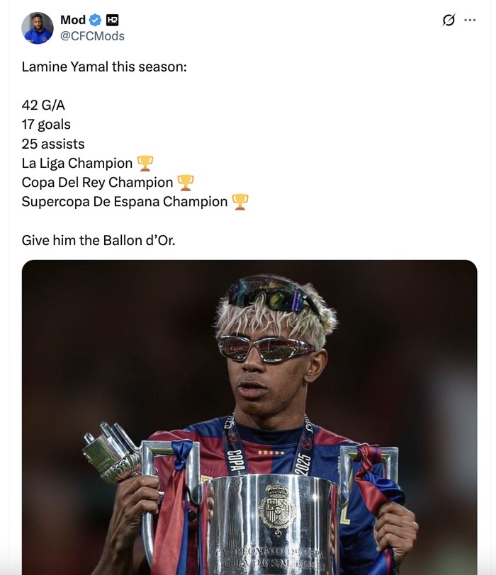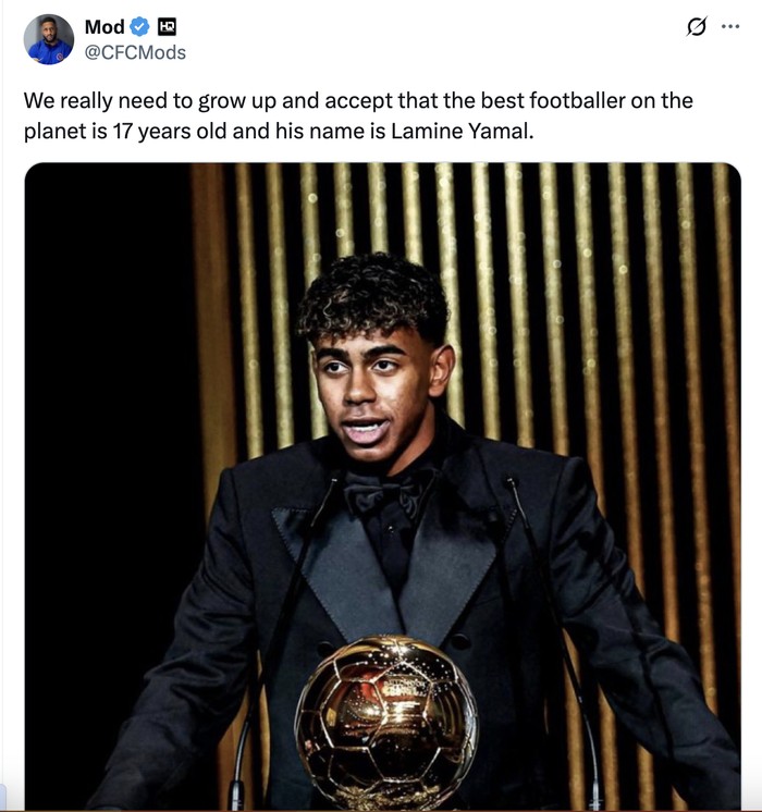 "Kita perlu dewasa dan menerima pemain terbaik dunia berusia 17 tahun dan namanya Lamine Yamal," tulis akun ini. Foto: X.com