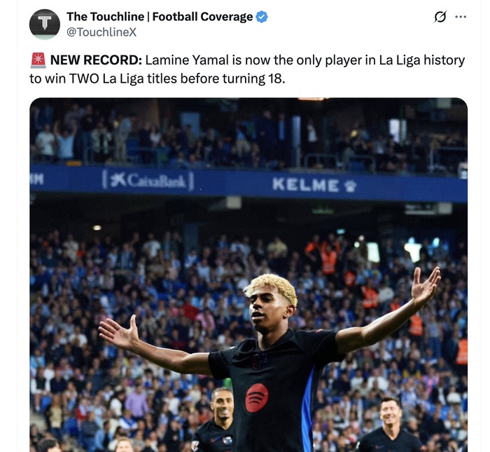 Yamal menjadi satu-satunya pemain dalam sejara yang menang dua La Liga sebelum berumur 18 tahun. Foto: X.com