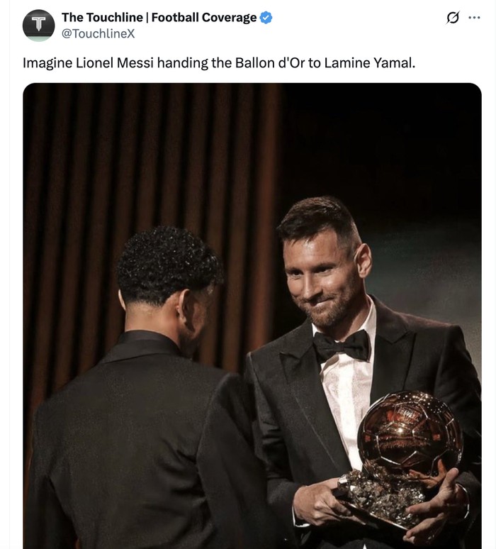Apakah nanti Lionel Messi akan memberi Yamal trofi Ballon d'Or? Foto: X.com
