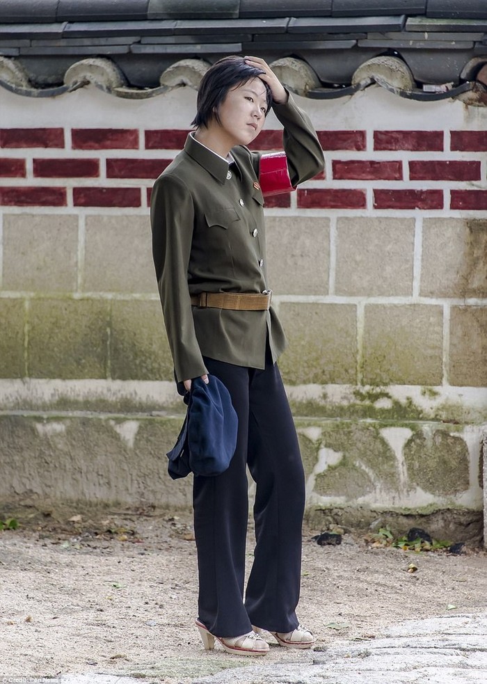 Seorang tentara perempuan berseragam tapi memakai sepatu hak tinggi. Foto: Pen News