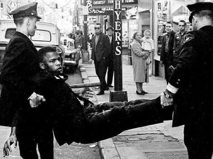 Foto John Lewis ditangkap di Tennessee pada tahun 1961 karena mengorganisir dan berpartisipasi dalam demonstrasi hak-hak sipil untuk warga kulit hitam di AS. Foto: Boredpanda
