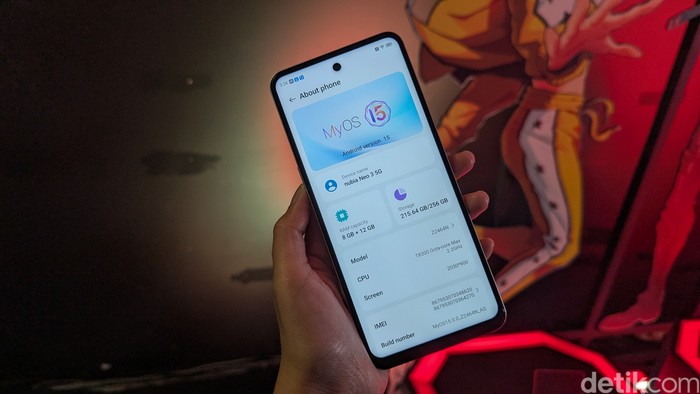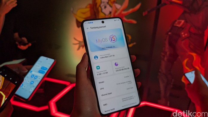 Nubia Neo 3 menjalankan sistem operasi Android 15 berbalut MyOS 15. Ponsel ini ditenagai chipset Unisoc T8300, RAM 8GB, dan memori internal 256GB. Foto: Virgina Maulita Putri/detikINET