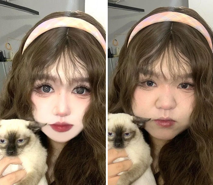 Model Dengan 225 ribu Pengikut. Foto Kanan Adalah Wajah Aslinya Foto: Boredpanda