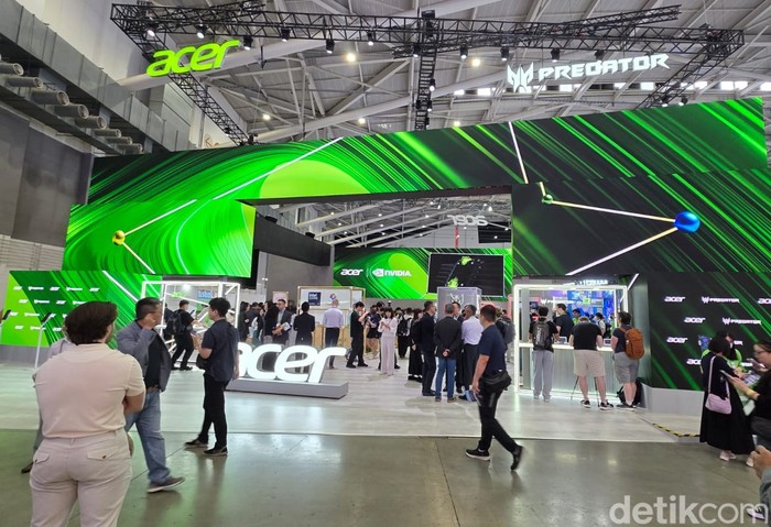 Acer adalah salah satu brand dengan ruang pameran terbesar di Computex 2025, dengan desain booth yang memukau seperti ini.Β Foto: Fino Yurio Kristo/detikINET