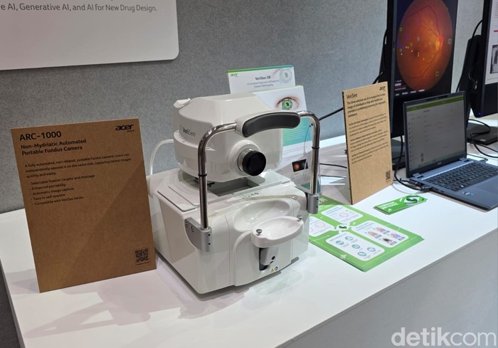 Selain komputer dan perangkat lain, Acer juga mulai terjun ke industri kesehatan dengan divisi Acer Medical. Salah satu teknologinya adalah VeriSee DR yaitu perangkat lunak diagnostik dibantu AI untuk retinopati diabetik (DR) yang mengidentifikasi pasien DR berisiko tinggi. Model AI intinya dilatih dari gambar yang diberi label oleh spesialis retina dan software tersebut telah divalidasi dalam uji klinis.Β Foto: Fino Yurio Kristo/detikINET