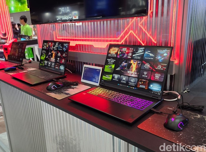 Jajaran perangkat laptop gaming Nitro baru yang dipamerkan di Computex 2025.Β Foto: Fino Yurio Kristo/detikINET