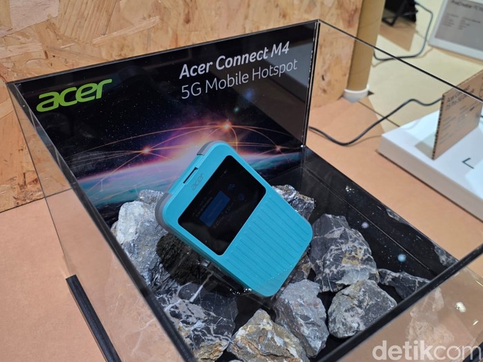 Ini adalah Acer Connect M4 5G Mobile Hotspot yang tahan air dan dibekali dengan baterai 8.000 mAh yang tahan lama.Β Foto: Fino Yurio Kristo/detikINET