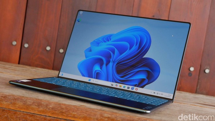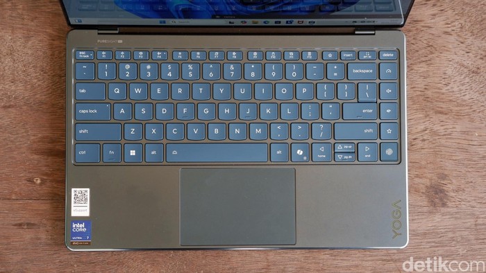 Lenovo Yoga Slim 7i merupakan laptop Copilot+ PC yang ditenagai prosesor Intel Core Ultra 7 dan GPU Intel Arc. Laptop ini hadir dengan pilihan RAM LPDDR5X hingga 32GB dan SSD PCIe Gen 4 M.2 hingga 1TB. Foto: Adi Fida Rahman/detikINET