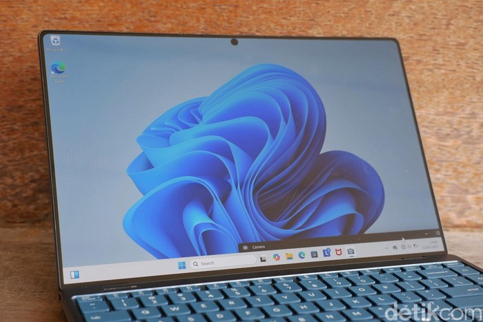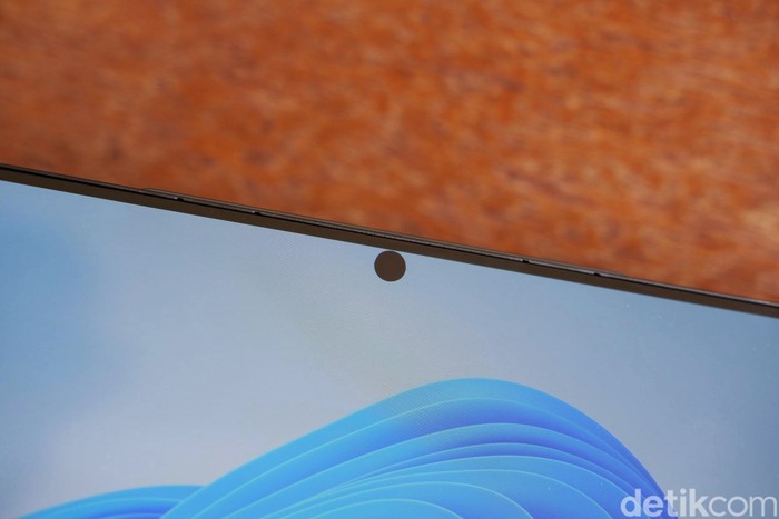 Berkat kamera yang disembunyikan di bawah layar, Lenovo bisa menggunakan bezel yang sangat tipis. Yoga Slim 9i berhasil mencapai rasio screen-to-body hingga 98% yang diklaim Lenovo sebagai pertama di dunia. Foto: Adi Fida Rahman/detikINET