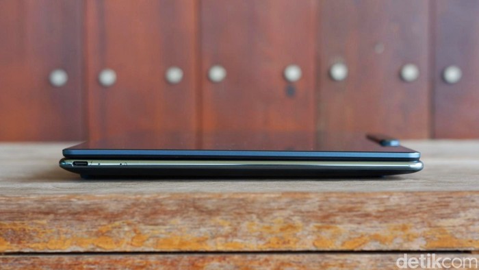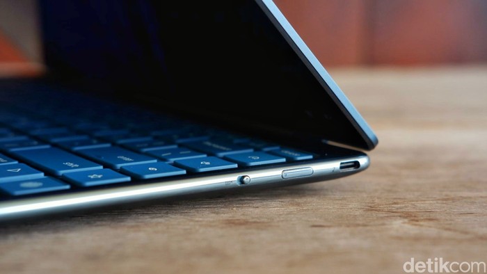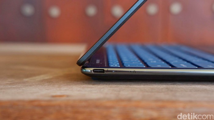 VPort Thunderbolt 4 ini mendukung berbagai fungsi, seperti transfer data berkecepatan tinggi hingga 40Gbps, pengisian daya (Power Delivery), dan koneksi ke layar eksternal melalui DisplayPort. Kehadiran port ini memastikan fleksibilitas untuk menghubungkan perangkat eksternal, seperti monitor 4K, docking station, atau perangkat penyimpanan cepat. Foto: Adi Fida Rahman/detikINET