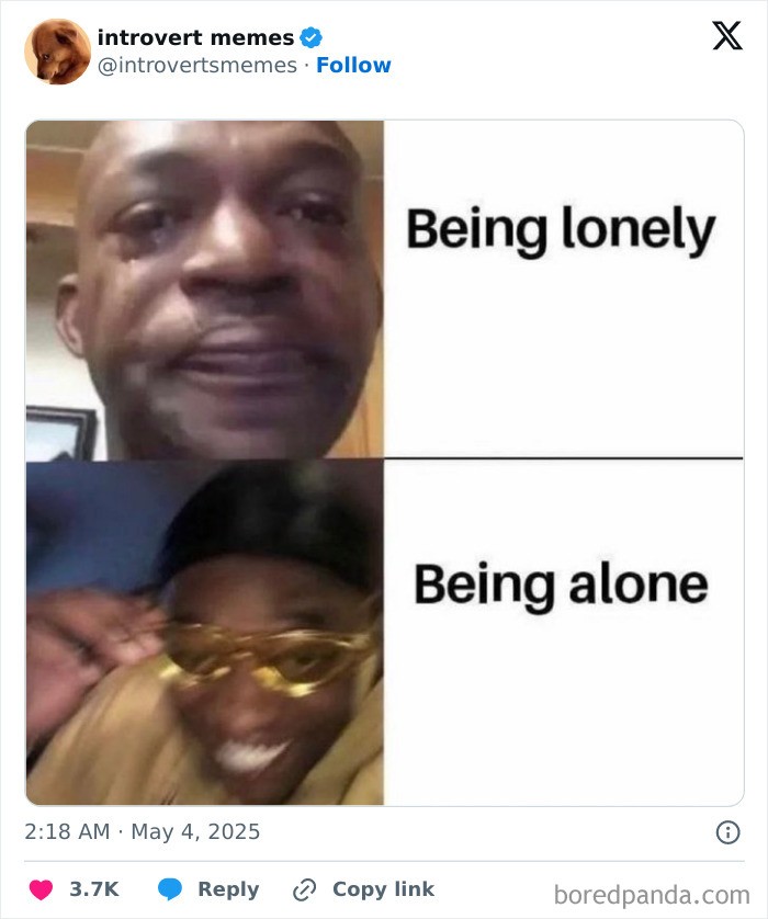 Tidak mau kesepian tapi suka sendirian. Foto: introvertsmemes via Bored Panda Β