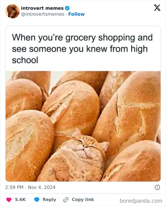 Lagi belanja eh, ketemu teman lama. Malas banget basa basinya. Foto: introvertsmemes via Bored Panda Β