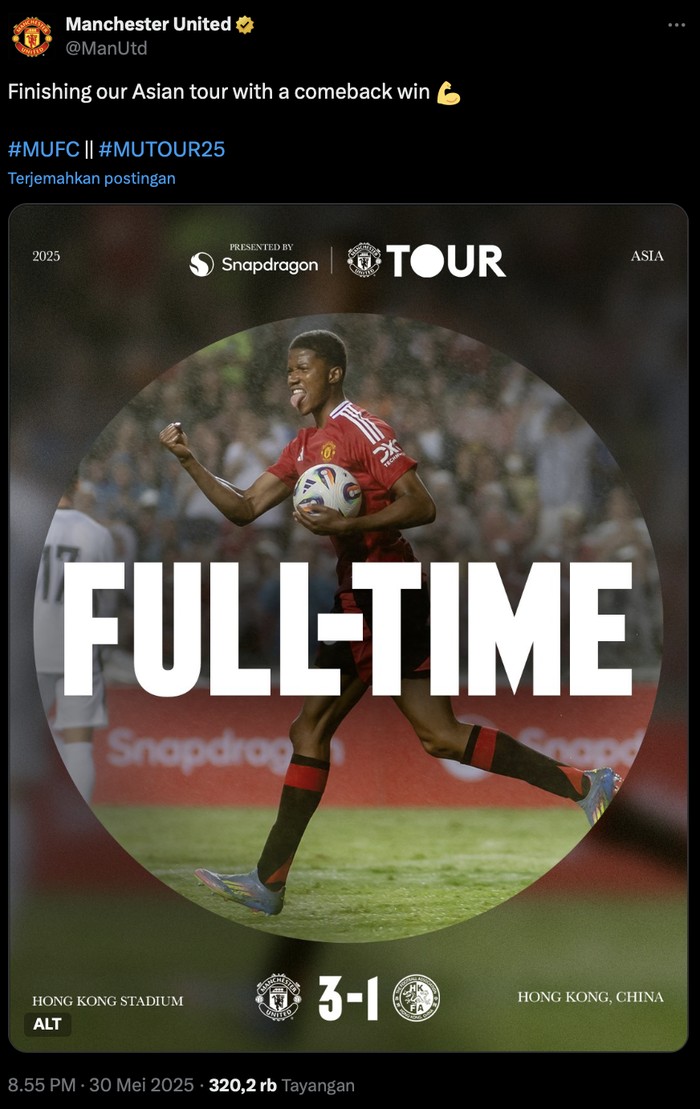 Dalam lawatannya ke Asia, MU hampir dipermalukan lagi. Foto: Screenshot X