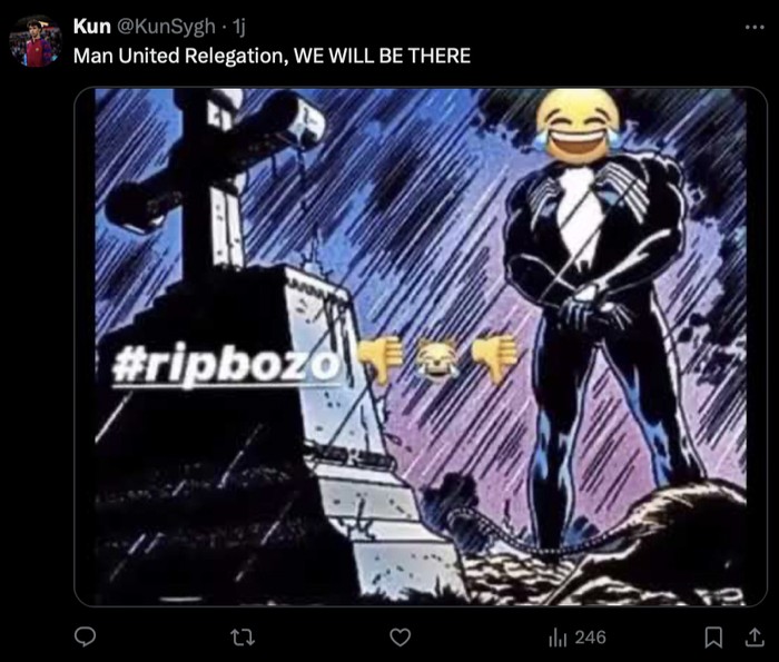 Bahkan, ada yang mengejek MU terdegradasi. Foto: Screenshot X