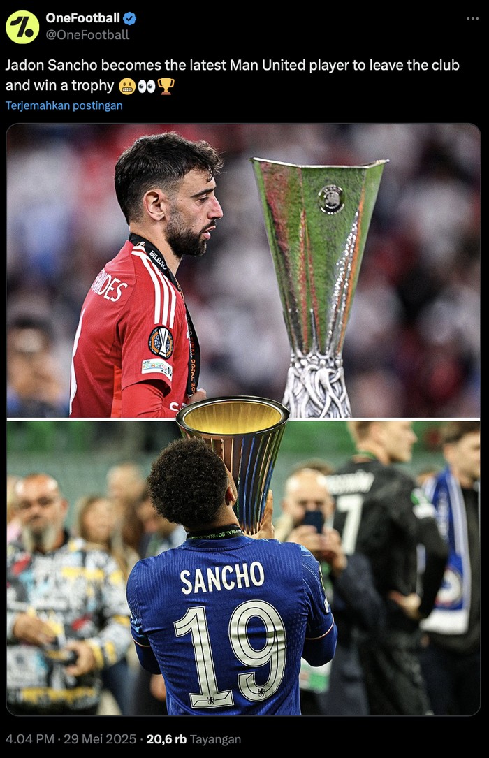 Hal menyakitkan lainnya, Man United gagal angkat piala musim ini, tapi pemain yang dipinjamkan malah juara. Foto: Screenshot X
