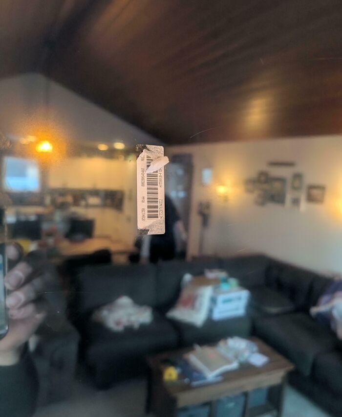 Seseorang membeli TV, tapi labelnya malah tertempel di layar. Foto: Bored Panda