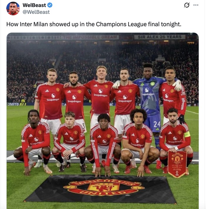 Inter Milan disebut mirip Manchester United semalam alias payah banget. Foto: X.com