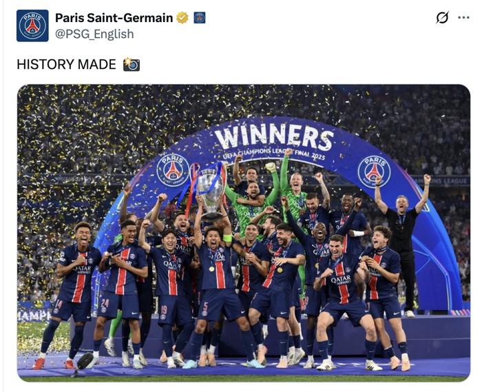 PSG pun untuk pertama kalinya juara Liga Champions. Foto: X.com