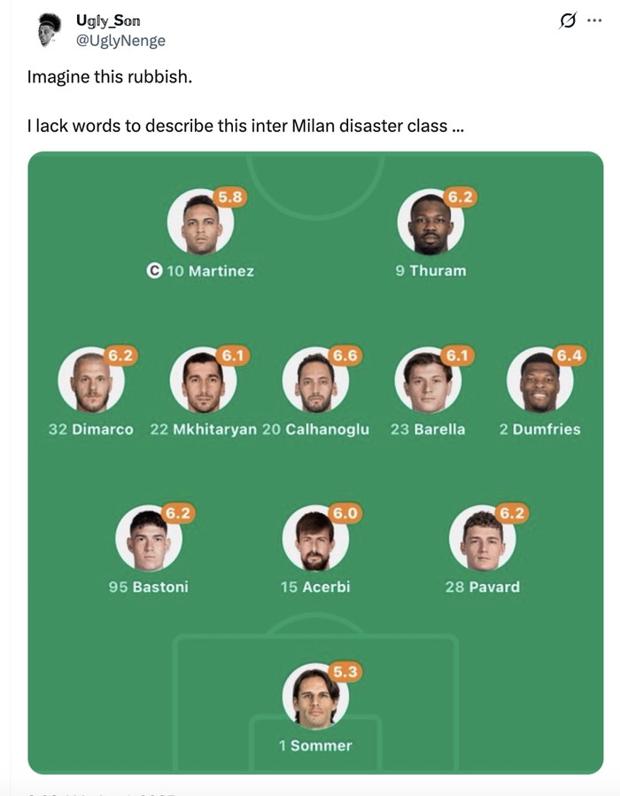 Penampilan para pemain Inter Milan semalam yang buruk semua. Foto: X.com