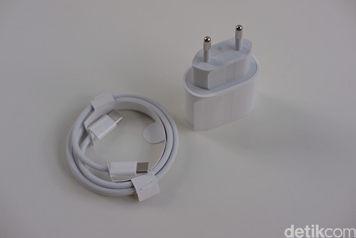 Adaptor daya USB-C 20W yang disertakan dalam paket dapat mengisi daya iPad Air lebih cepat daripada adaptor daya 12W yang digunakan untuk iPad Air generasi sebelumnya. Adaptor daya 20W ini juga kompatibel dengan perangkat Apple lainnya seperti iPhone dan MacBook Air. Foto: Adi Fida Rahman/detikINET