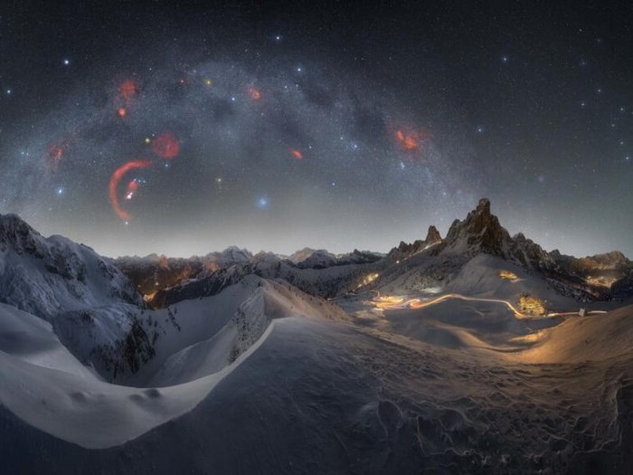 'Road to Winter Paradise' karya Andrea Curzi. Foto panorama yang menakjubkan ini diambil di Passo Giau, Italia. Foto: Andrea Curzi/Milky Way Photographer of the Year