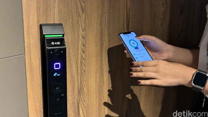 Melengkapi sistem keamanan rumah, ada lini Smart DoorLock yang memiliki sistem buka kunci berbeda. Foto: Virgina Maulita Putri/detikINET
