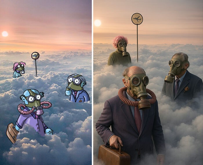 Kali ini, Lucas meninjau kembali proyeknya dengan bereksperimen dengan AI untuk menciptakan kembali beberapa karyanya menggunakan karakter yang tampak lebih realistis. Foto: Lucas Levitan via Boredpanda