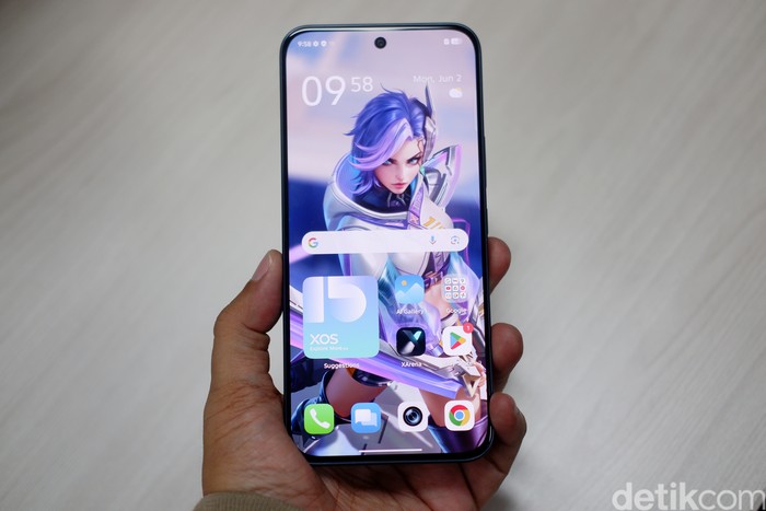 HP ini mengusung layar AMOLED datar berukuran 6,78 inci dengan resolusi 1,5K (1224 x 2720 piksel). Layar ini mendukung refresh rate 144 Hz, touch sampling rate 2160 Hz, kecerahan puncak hingga 4500 nits, serta fitur HDR 10+ dan Gorilla Glass 7i untuk ketahanan ekstra. Layar ini menjanjikan visual yang mulus dan tajam, ideal untuk gaming dan menonton konten multimedia. Foto: Adi Fida Rahman/detikINET