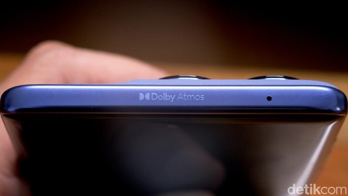 Pada bagian atas ponsel ada tulisan Dolby Atmos. Foto: detikINET/Anggoro Suryo Jati