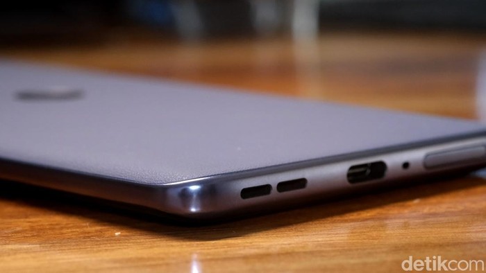 Bodi belakangnya menggunakan material kulit vegan yang nyaman digenggam dan tidak licin karena bertekstur. Foto: detikINET/Anggoro Suryo Jati