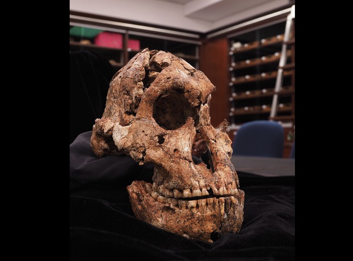 9: Taung child (Australopithecus africanus): Tengkorak Australopithecus africanus ini ditemukan di Afrika Selatan tahun 1924, berumur 2,8 juta tahun. Ini adalah artefak penting paleoantropologi tentang hominin awal. Ia menunjukkan bukti pergerakan bipedal dan penggunaan alat, menantang anggapan sebelumnya tentang kemampuan hominin di zaman Pliosen. Fosil ini memberi kaitan penting transisi evolusioner dari nenek moyang mirip kera menjadi hominin yang lebih berkaki dua dan memakai alat. Foto: Australian Museum