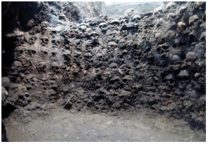 8. Huey Tzompantli (H.sapiens): Sebuah bangunan monumental dari peradaban Aztec, Huey Tzompantli, menggambarkan budaya dan ritual zaman itu. Diterjemahkan jadi Rak Tengkorak Besar" ia dihiasi tengkorak korban pengorbanan. Bangunan mengerikan ini menjadi bukti visual penghormatan suku Aztec terhadap dewa Huitzilopochtli, yang dikaitkan dengan perang dan Matahari. Tengkorak-tengkorak tersebut, disusun dengan cermat, melambangkan pandangan dunia Aztec yang mengaitkan kehidupan, kematian, dan kosmologi.Β Foto: Yucatan Times